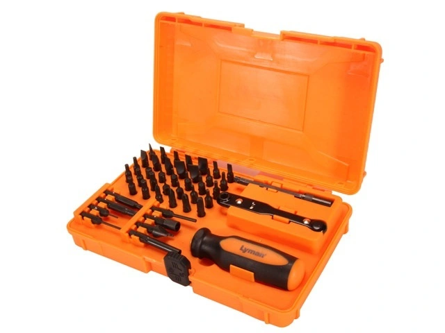 Lyman’s screwdriver sets provide all the bits needed by gunsmiths and all those who work on firearms. These complete sets come with bits for slotted screws, hex screws, 6-lobe screws, and Phillips screws; in addition to an assortment of specialty bits. The specialty bits include a Weaver scope ring bit, Glock front sight bit, 1911 grip bushing bit, as well as .062″, .093″ and .118″ pin punches.