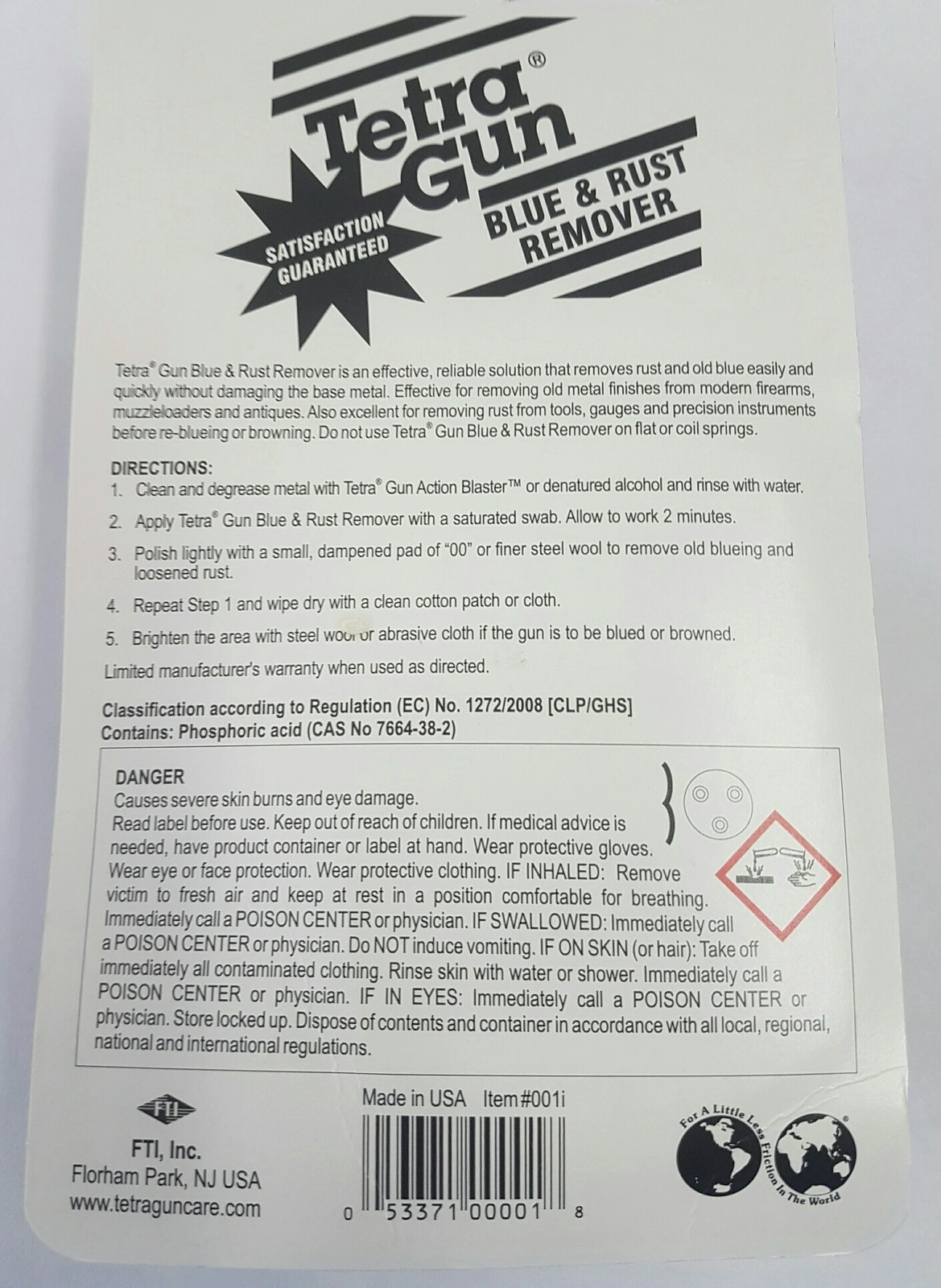 Tetra Gun Blue and Rust Remover is the perfect cleaning option for your firearm. Perfect for maintenance and ensuring your rifle is in tip top condition when you need it to perform.